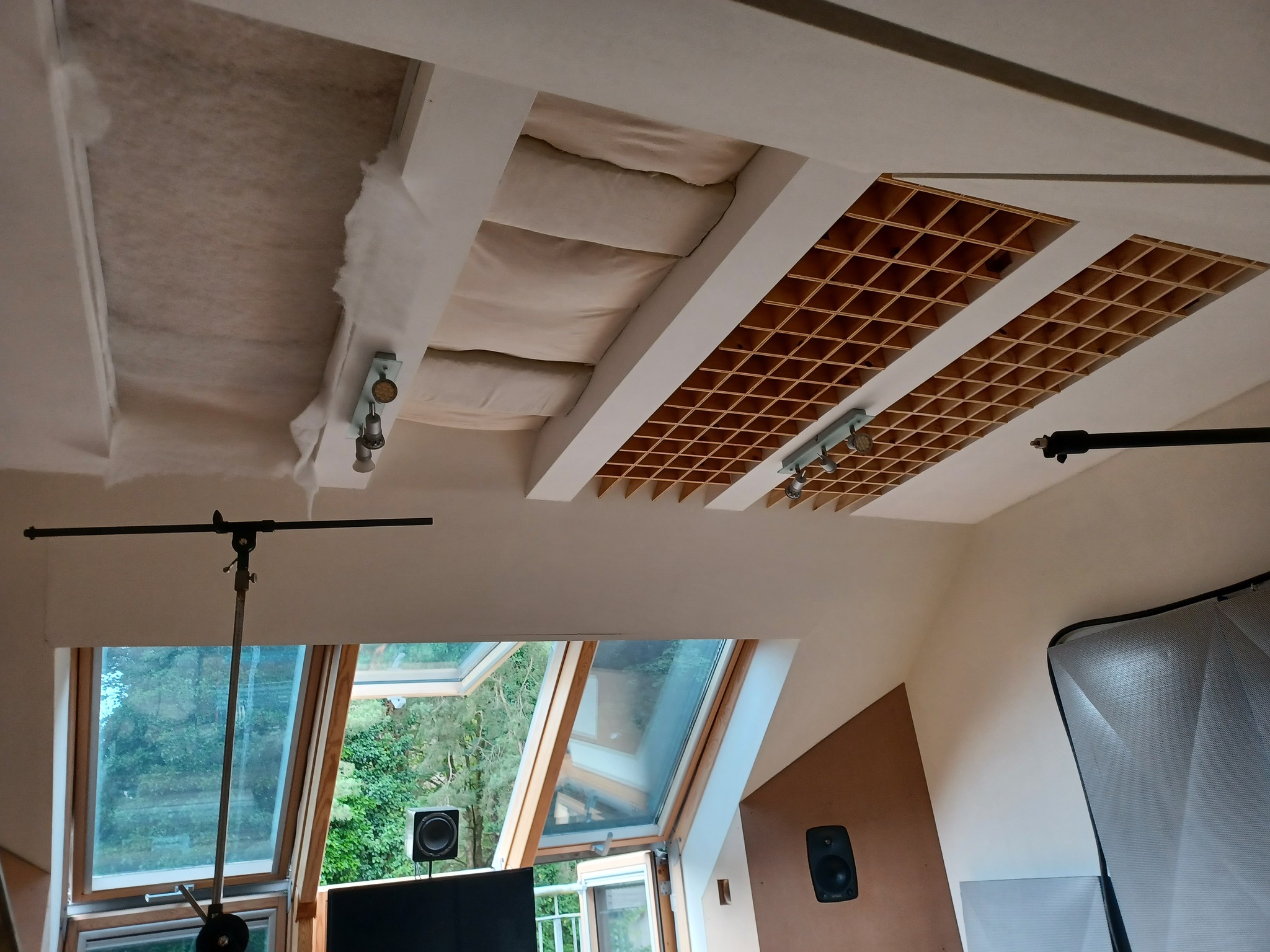 The result looks really good, but sound must take priority, so I’ve installed deep absorbers in the recesses. The grids below those are space couplers, very effective sound diffusers that help preserve the live sound of the room without negative acoustic consequences.